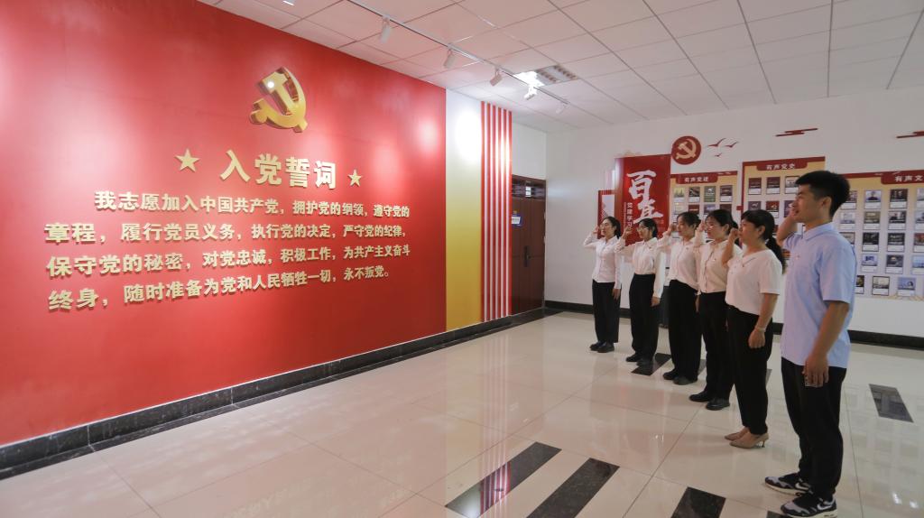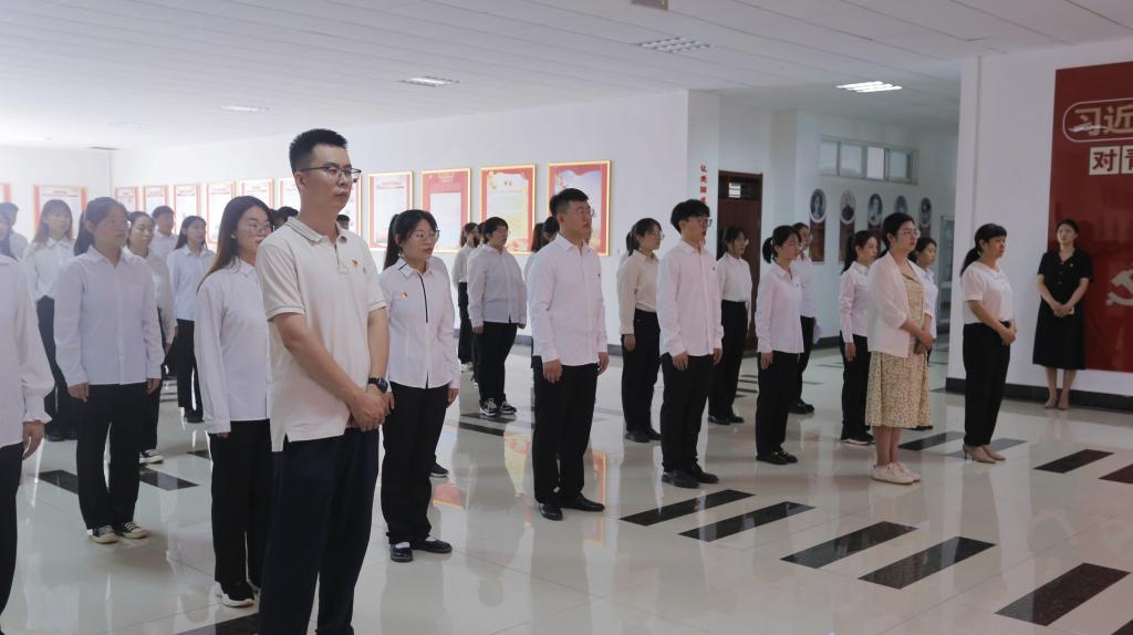 仪式在嘹亮的《国际歌》中拉开序幕,52名新党员举起右拳面向鲜红的党旗庄严宣誓,光荣加入中国共产党。铿锵有力的誓言是对党的庄严承诺,表达了对党忠诚,永不叛党,为共产主义事业奋斗终生的决心。