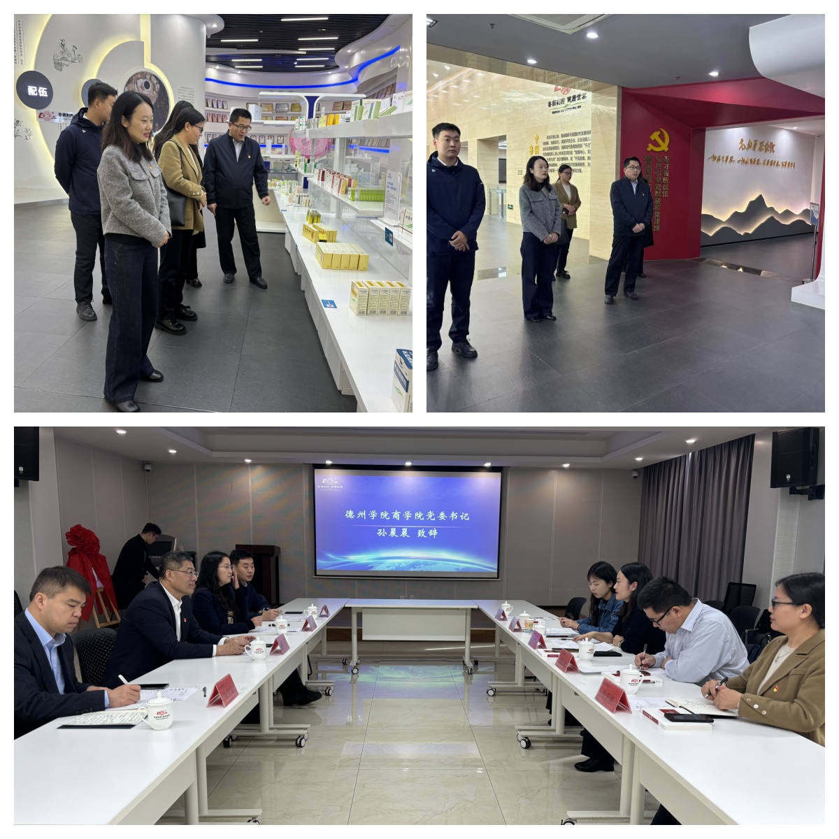 活动当天,孙书记在鲁南制药集团相关人员的带领下,参观了集团展览馆、时代楷模赵志全同志纪念馆以及党建馆,深入了解了鲁南制药集团的发展历程、企业文化以及党建引领企业发展的实践成果。在随后的座谈会上,双方共同观看鲁南制药集团宣传片,随后,鲁南制药集团机关第三党支部书记、财务部部长曹广军发表致辞并简要介绍了集团的基本情况和发展愿景,人力资本中心主任宋祥云详细介绍了集团人员架构、校企合作开展情况及人才需求,宋主任表示,鲁南制药集团始终秉持与高校建立紧密合作关系的宗旨,期望通过校企合作,携手培育更多符合企业需求的高素质、高技能的应用型人才。孙书记就学院的发展历程、专业设置、办学规模、办学目标、人才培养特色、党建、就业等情况进行了介绍,并表示希望与鲁南制药集团在党建共建、人才培养、科研合作等方面开展深入合作。会议最后,双方就“党建共建基地”、“实习实训基地”、“创新创业基地”、“就业基地”签订合作协议并揭牌。
