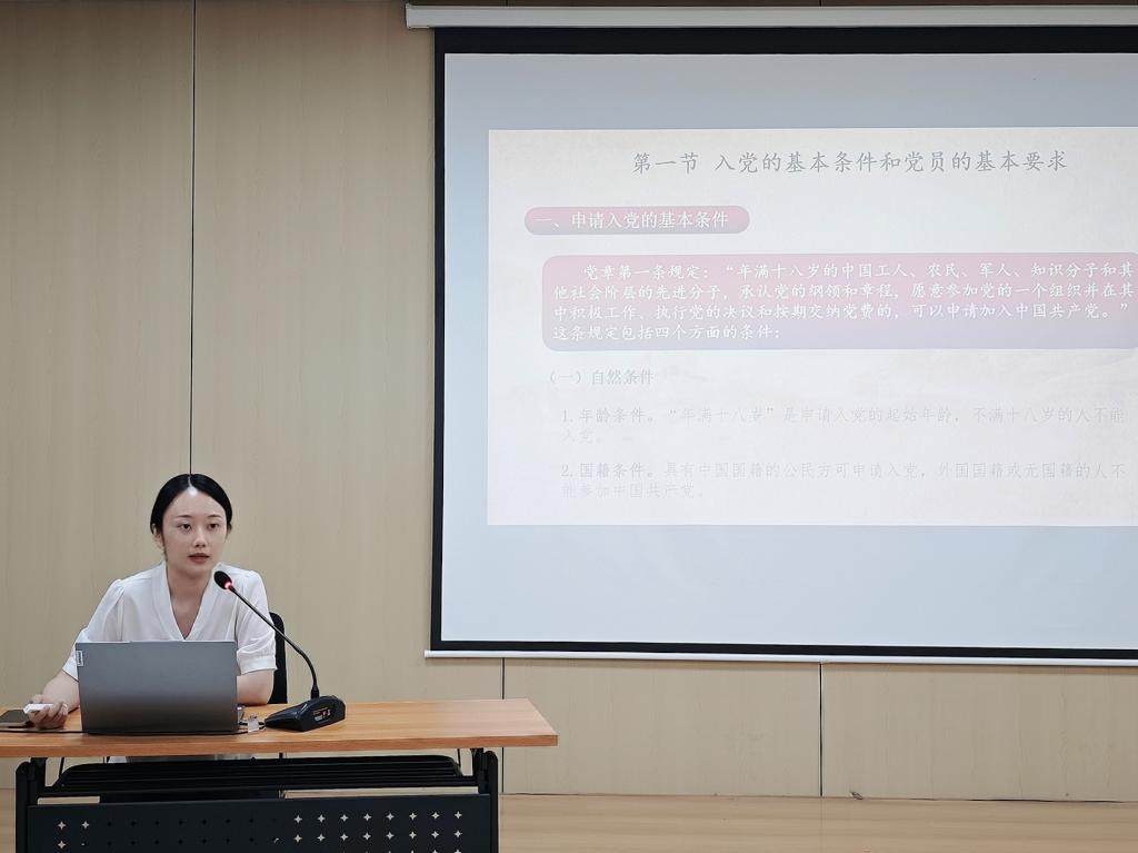 开班仪式上,学院党委书记孙晨晨讲授专题党课《绽放青春底色,争做合格党员》。详细解读了入党的基本条件和党员的基本要求、发展党员的基本程序,并强调入党积极分子要端正入党动机,以实际行动争取早日入党。号召学员们以更高的标准要求自己,在学习、工作、生活中都要勇于担当,发挥先锋模范作用。