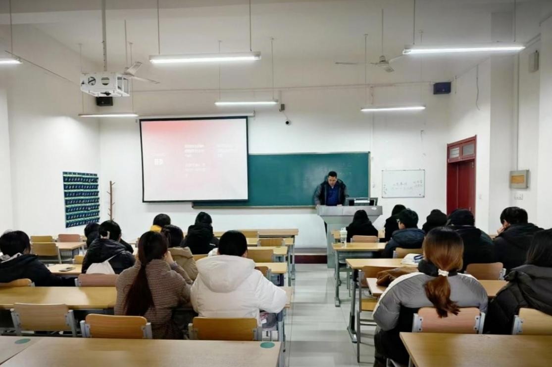 2025年12月5日,taptap点点体育党委副书记刘金亮在明理楼0356教室,为2024级国际经济与贸易专业全体学生讲授《深学全会精神 勇担时代使命》专题党课,课程紧扣党的二十届四中全会精神与 “十五五” 规划核心要义,深度解析政策红利下的青年学子发展机遇,助力学子找准专业成长与时代需求的结合点。