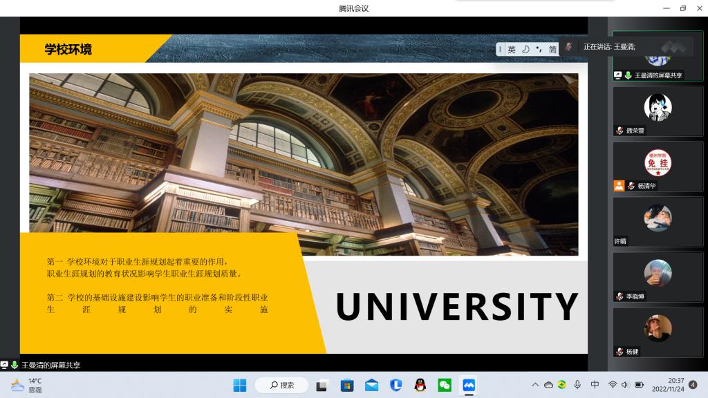 11月9日,经济管理学院举办职业生涯规划演讲比赛,参赛的同学以个人职业生涯规划的分享、求职过程中的心理学知识等为主题进行自己的演讲,一方面分享了同学们在职业生涯规划中的思考与心得,一方面也拓展了职业生涯规划的相关知识。