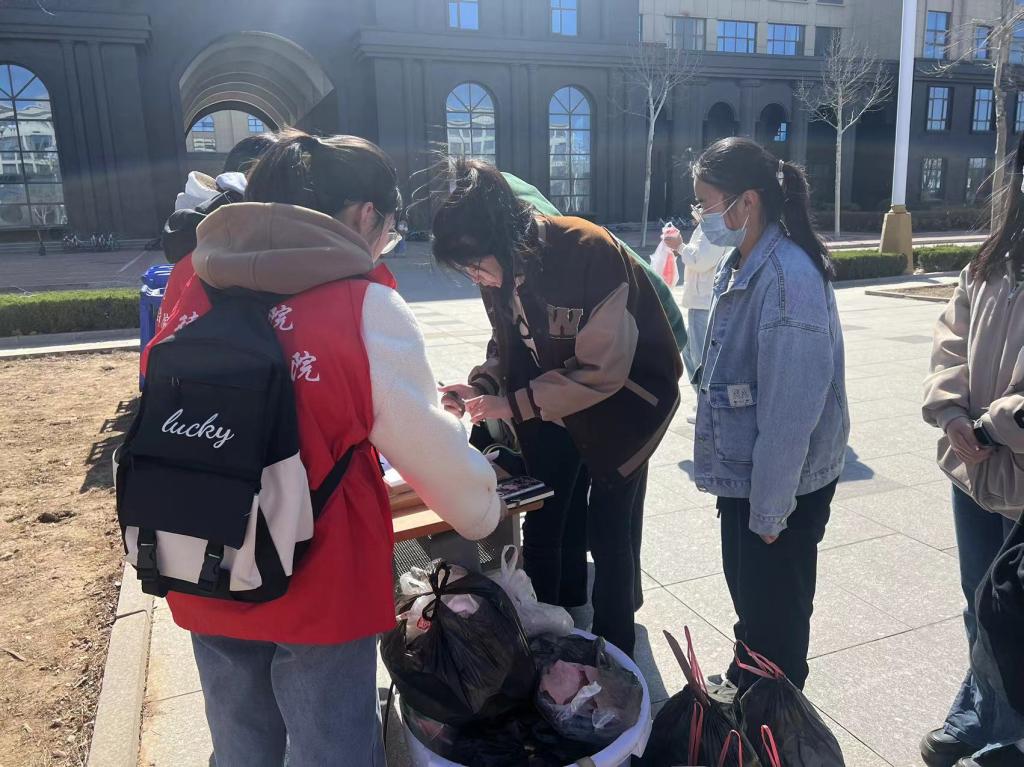 3月12日,正值第四十五个植树节之际,经济管理学院学生会举办“手持一抹绿 心栽一片林”植树节环保换物活动。活动中同学们按照划分的区域在校园内捡拾垃圾,通过定量垃圾换回一盆小小绿植,为校园生活增添一抹生机和绿色。现场志愿者有序组织并耐心讲解垃圾回收的方式及分类回收垃圾的益处。