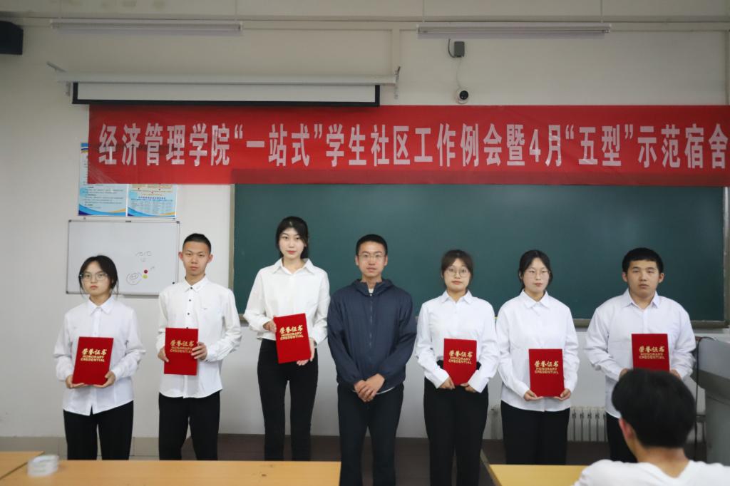 5月9日,经济管理学院举办“寓见经管 宿说青春”示范宿舍表彰仪式,宿舍分管辅导员、全体宿舍长参加仪式。活动对管理人员及职责、宿舍卫生要求、宿舍纪律管理规定和“五型”示范宿舍评比办法四个方面进行宣读教育,对宿舍文明建设提出了较为具体的要求。随后示范宿舍学生代表发表感言,并通过图片、视频的方式展示师范宿舍的风采,为全院宿舍的文明建设树立的榜样。最后,辅导员为示范宿舍学生代表颁奖并合影。