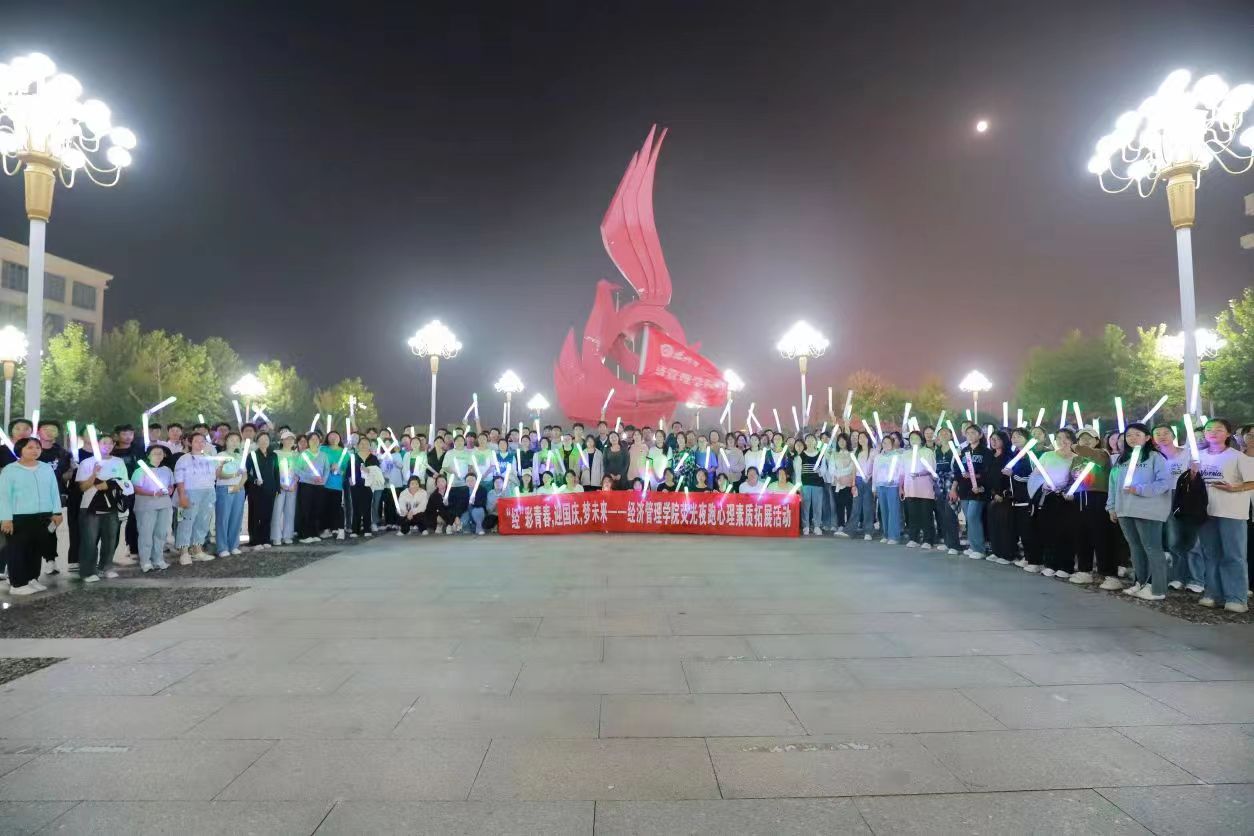 为丰富大学生的课余生活,鼓励大学生通过跑步的方式,强健体魄,愉悦身心,经济管理学院于9月27日于东校区腾飞广场举办了“经”彩青春,迎国庆,梦未来——荧光夜跑心理素质拓展活动。本次活动展现了运动、健康、青春的青年学子形象,来自各个年级不同班级约200余名学生参加了本次活动。