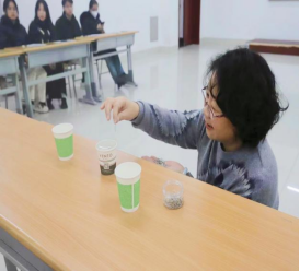 在“认识自我,向阳而生”主题团体心理工作坊中,主持人现场给同学们分享了一个小实验,将纸杯装满水到与杯面齐平,往满水的纸杯中放入曲别针,最后将一整盒曲别针全部放进了杯中,而杯中的水没有溢出来。通过这个实验,结合积极心理学,引导学生在日常学习和生活中发挥长板效应,并引导同学们写出了自己的五个优势进行分享。