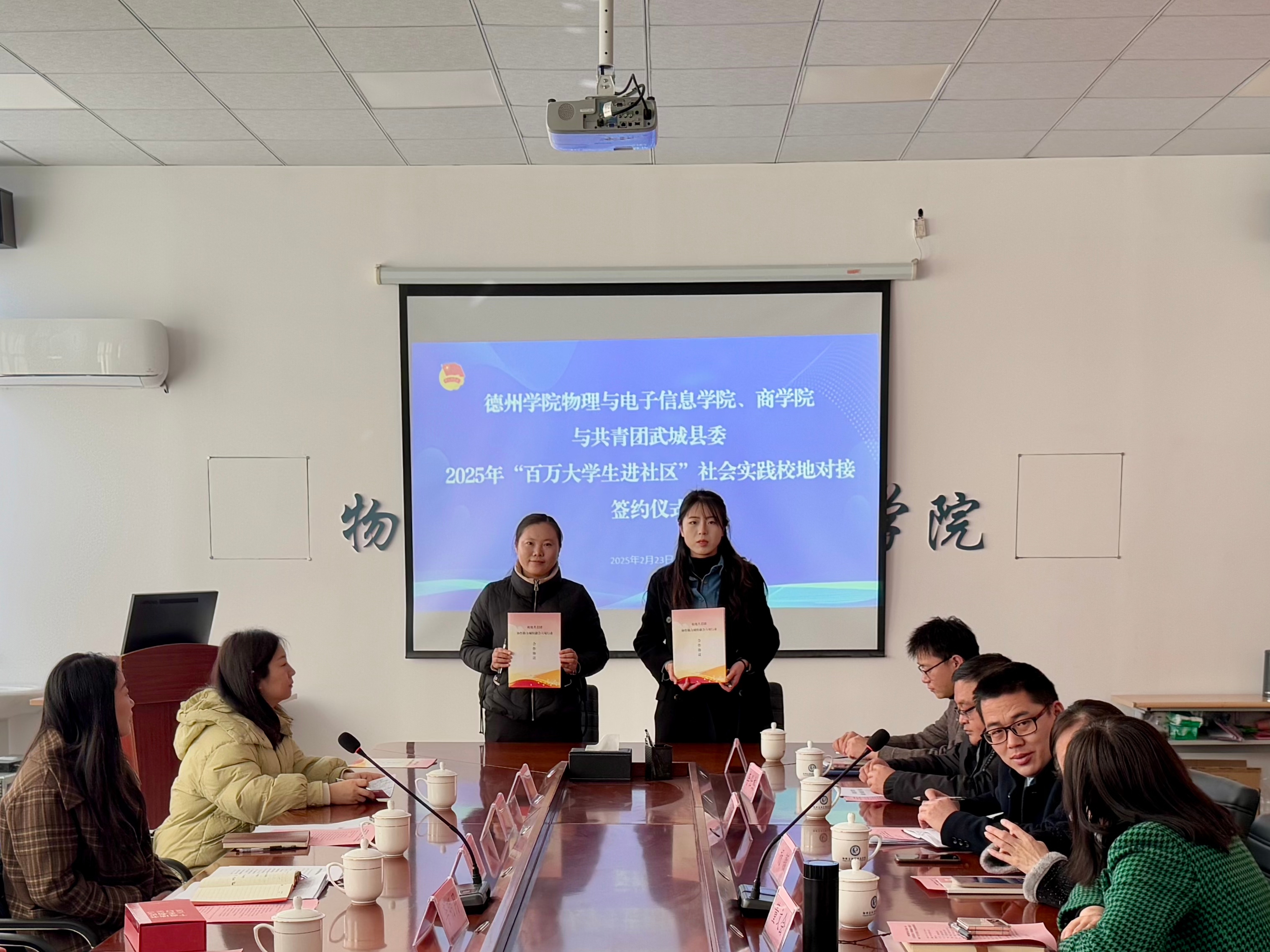 为深入学习贯彻习近平新时代中国特色社会主义思想和党的二十届三中全会精神,充分发挥共青团组织桥梁纽带作用,推动学院工作高质量发展,协作助力城校融合提质增效。2月23日,taptap点点体育、物理与电子信息学院与共青团武城县委、共青团德城区委、天衢新区团工委开展2025年“百万大学生进社区”社会实践校地对接座谈交流会。