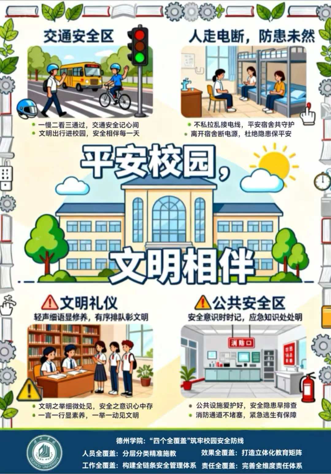 本次大赛以“文明如何塑造校园”为创作核心导向,要求参赛作品基于校园真实场景与师生日常生活展开,围绕主题契合度、视觉表现力、创意独特性以及艺术感染力四大方面进行创作。大赛不仅检验创作者对文明安全主题的深度理解,还关注作品艺术表达的生动展现,为师生提供了展示艺术才华的舞台,同时引导大家深入思考安全意识在校园生活中的重要意义,为营造和谐美好的校园环境增添动力。