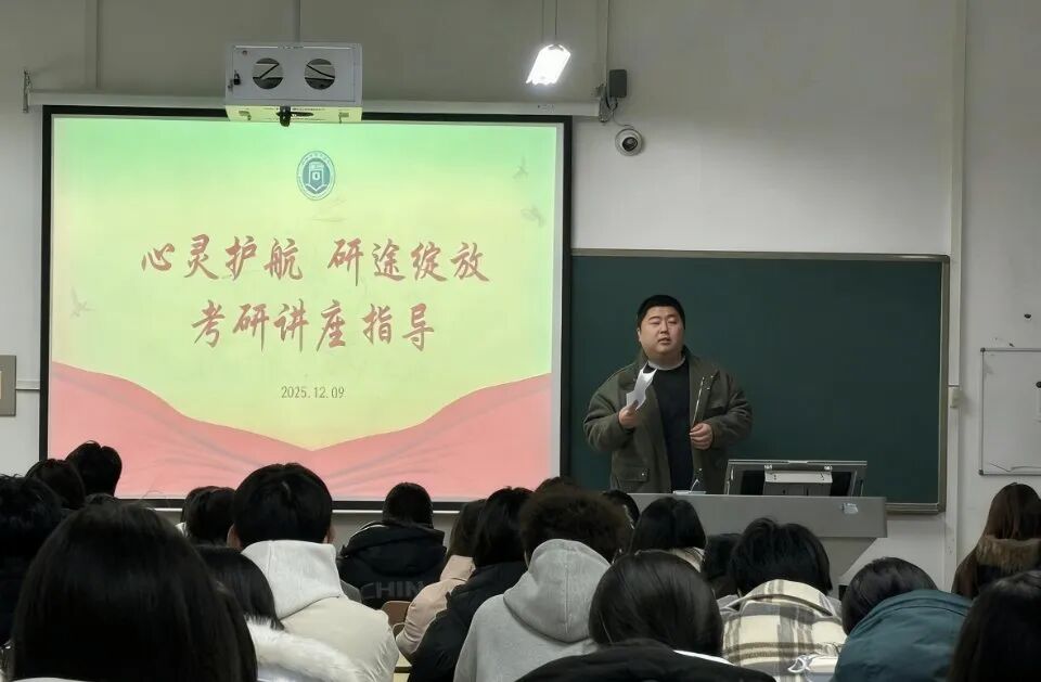 讲座聚焦考研学子在备考中普遍存在的目标模糊、规划混乱、心态焦虑等问题,通过政策解读、经验分享与互动交流等形式,为学生提供系统性指导。季晓博老师围绕考研趋势、院校选择、复习规划与心理调适等内容展开讲解,引导学生结合自身专业基础与发展规划,合理确定目标、优化备考策略,提升复习效率与心理韧性。在互动环节,同学们踊跃提问,季老师结合实际情况细致解答,现场气氛融洽。