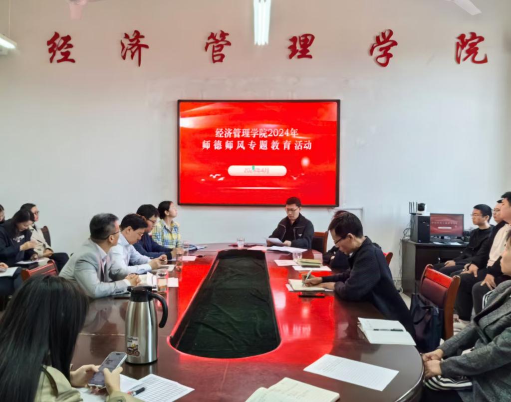 为加强教师队伍建设,提升师德师风水平,4月30日,经济管理学院开展师德师风培训学习活动,全体教职工参加。