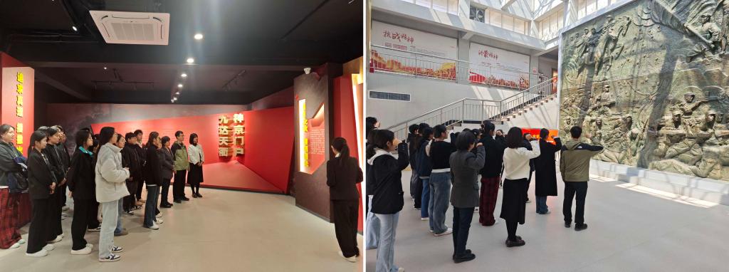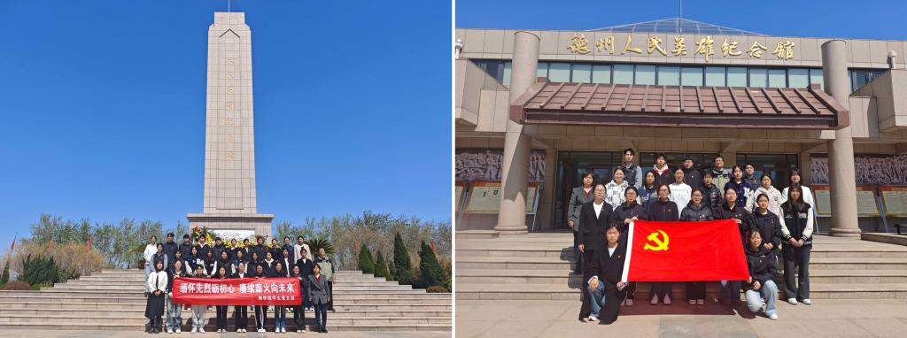 在革命烈士纪念碑前,师生党员敬献鲜花,肃立鞠躬、垂手默哀,向英勇牺牲的革命烈士表达哀悼和追思。仪式后,在讲解员的带领下,师生党员一同参观德州革命纪念馆,一幅幅珍贵的历史照片、一件件斑驳的革命文物、一段段震撼的英雄事迹,生动再现了德州儿女在抗日战争、解放战争中的壮烈篇章。随后,师生党员在浮雕前举起右手,重温入党誓词。一声声铿锵有力的誓言,深切缅怀英烈为民族解放、国家振兴所做的丰功伟绩,表达了大家为党的事业奋斗终身的决心。