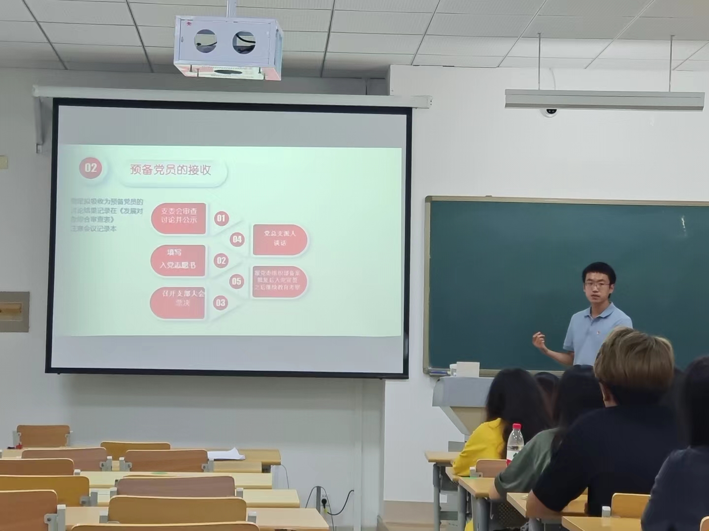 经济管理学院各学生党支部书记主要从中国共产党的发展历程、如何端正入党动机、申请入党流程、《中国共产党发展党员工作细则》、和引导学生树立远大理想,扣好人生的第一粒扣子等方面给2022级新生上了一堂生动的入党启蒙第一课。在课堂上,学生党支部书记通过中国共产党的光辉历程,党领导全国人民取得的伟大成就等方面入手;深度剖析了常见的不端正的入党动机类型,强调了新生要从思想上入党,保证入党动机的纯净性;对发展党员的流程进行了详细的说明,激发了新生强烈的入党意愿。