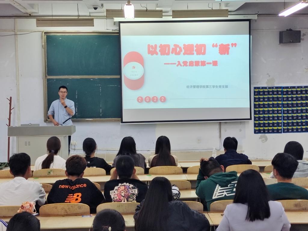 青年兴则国家兴,青年强则国家强。为切实做好2022级新生入党启蒙教育工作,增强新生对中国共产党的认识,培养新生的爱党、爱国情怀,引导新生积极向党组织靠拢,让“初心”薪火相传,以昂扬的姿态迎接二十大的召开。9月27日晚上,经济管理学院开展“以初心迎初‘新’”2022级新生入党启蒙第一课。