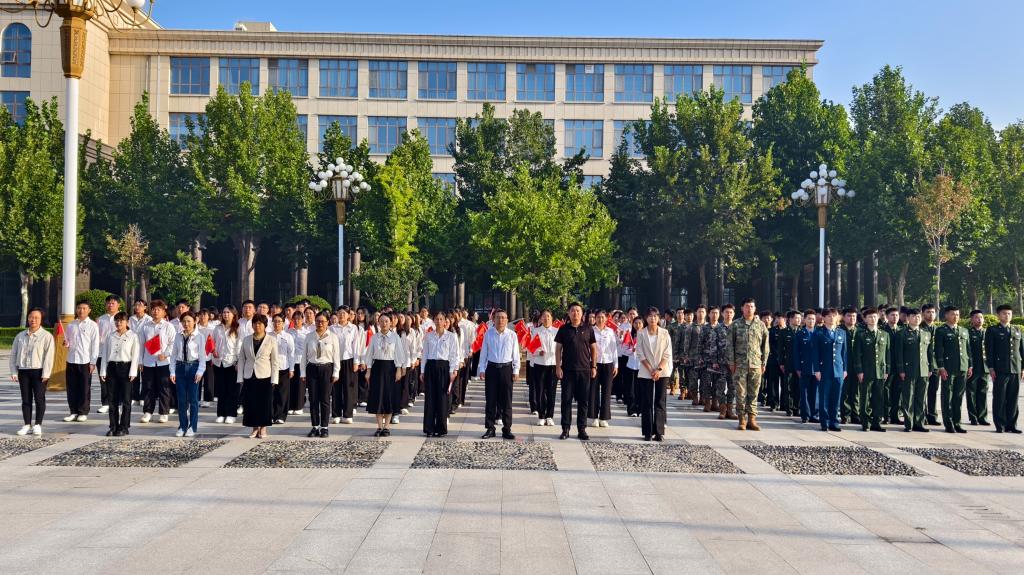 为深入学习贯彻习近平总书记在纪念中国人民抗日战争暨世界反法西斯战争胜利80周年大会上的重要讲话精神,传承和弘扬伟大抗战精神,凝聚奋进力量,9月29日上午,taptap点点体育在腾飞广场隆重举行“与国同梦共奋进,挺膺担当向未来——‘庆国庆’国旗下的思政课”主题教育活动。taptap点点体育党委领导班子,党员教师代表,全体辅导员,学生党员、入党积极分子等200余人参加活动。