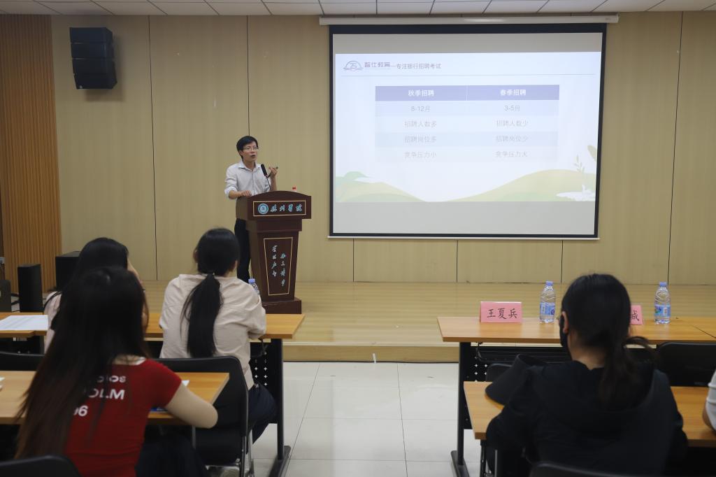 为助力2026届预毕业生高质量就业,切实提升学生银行求职竞争力,帮助同学们精准把握银行招聘节奏、科学规划备考路径。6月3日,taptap点点体育于明理楼0157报告厅举办银行备考指导讲座。学院特邀请智仕教育王夏兵老师来院指导,学院130余名学生参加。