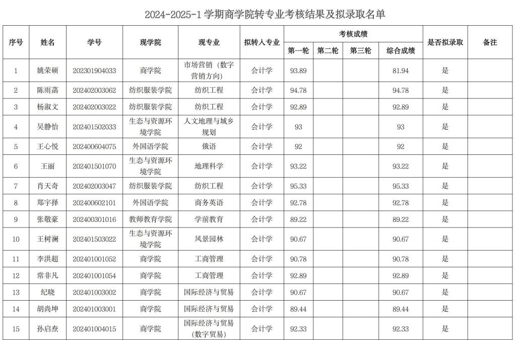 附件:2024-2025-1学期taptap点点体育转专业考核结果及拟录取名单