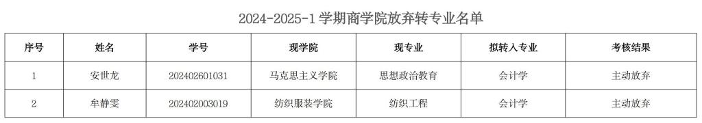 2024-2025-1学期taptap点点体育放弃转专业名单