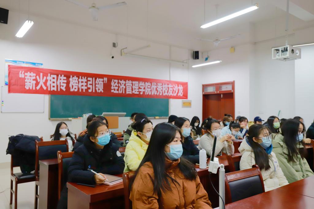为帮助2021级学生了解就业市场形势,学习行业前沿动态,12月3日,经济管理学院举办“薪火相传 榜样引领”优秀校友沙龙。经济管理学院党委副书记、2021级班主任与学生代表参加活动。