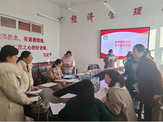 为切实抓好教学常规管理,全面了解教师教学动态,深化教育教学改革,不断提高教育教学水平和人才培养质量,2023年11月23日,学校教务处、质评处教学检查组莅临经济管理学院,开展2023-2024学年第一学期期中教学检查工作。学院相关负责人、教学办公室主任、全体系主任参加了本次检查工作。