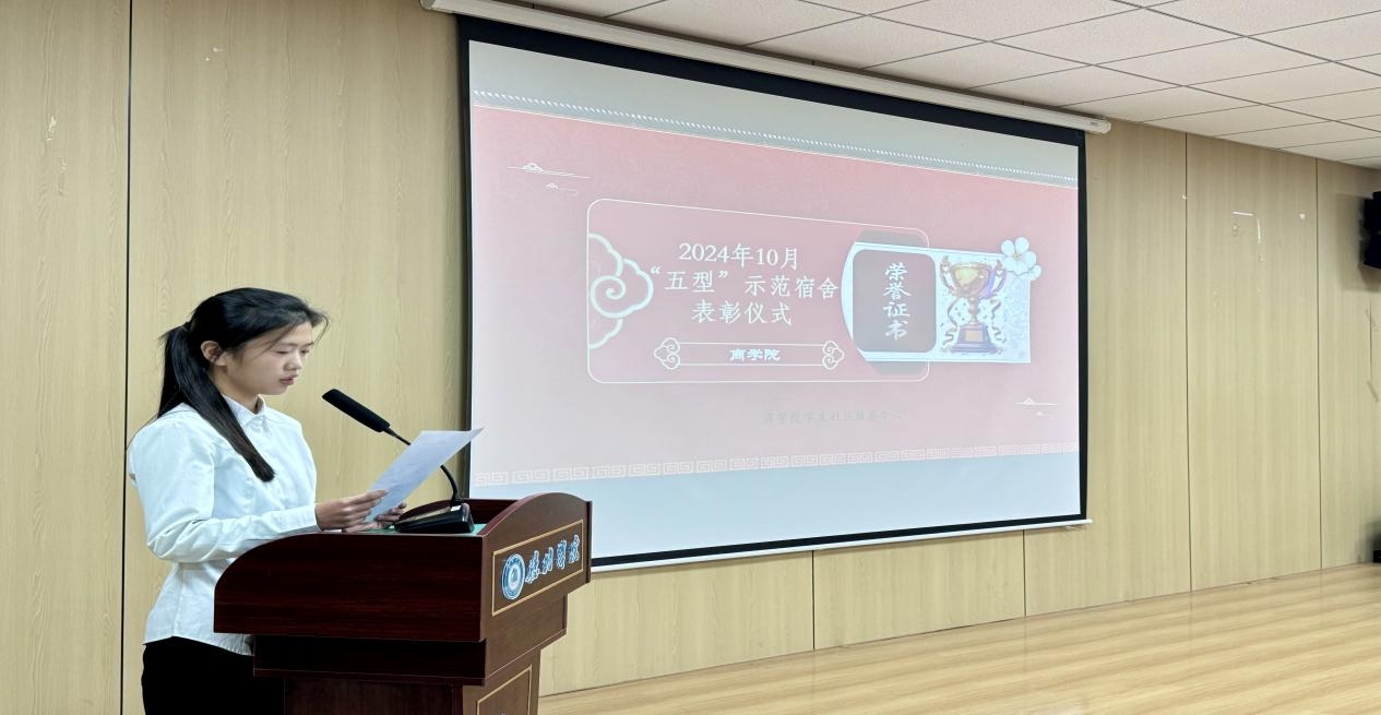 优秀示范宿舍学生代表23工商杜远洋同学作了题为《创建文明宿舍,共享温馨生活》的发言,呼吁大家积极行动起来,团结一致,维护宿舍安全、卫生,营造和谐良好的宿舍氛围,并对于自己作为学生社区服务中心的一员,提出了更高的目标和要求。