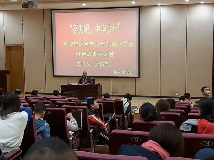 活动开始之前,志愿者们积极协助青少年宫负责人做好活动现场布置、设备调试等准备工作。活动在《我们是共产主义接班人》的歌声中拉开序幕,带动了现场气氛。随后,刘家、只楚等多所小学的小朋友在老师带领之下进行了“书香烟台”暑期阅读马拉松颁奖活动,少年宫的老师对勤读书、爱读书的小朋友们进行了表扬。紧接着,孙佑杰老人从自己的往事与自己一生追求的四个人生梦想两个方面展开演讲,并鼓励少年珍惜当下、心存梦想、不忘初心、努力奋斗。值得一提的是,今年已92岁的孙佑杰仍笔耕不辍,共出版6部著作,记录了他在抗日战争时期作为战地记者所经历的事情,以实际行动为新世纪青少年作出榜样。至此,本次2019年烟台市少年儿童读书节红色大讲堂活动圆满结束。