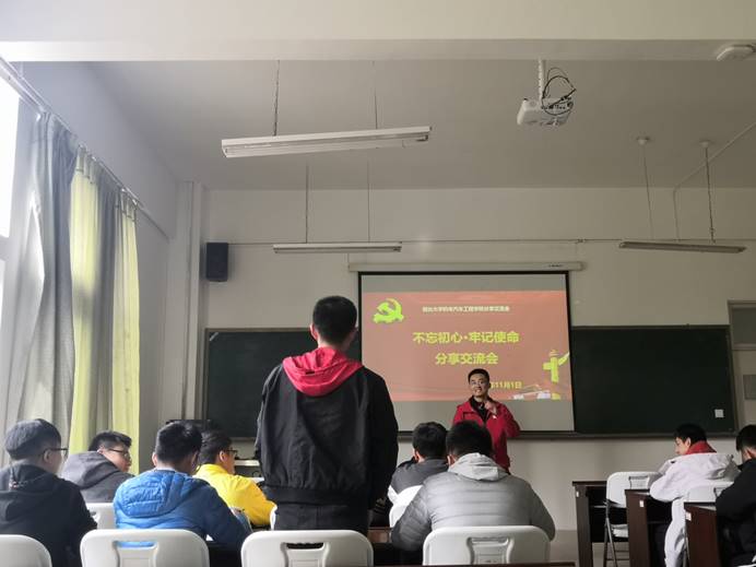 会议伊始,支部书记分别向大家介绍了包括发展对象汇报有关情况并宣读入党申请、入党介绍人介绍发展对象有关情况并表明对其入党的态度、支委会报告发展对象的审查情况、与会党员发表意见并对发展对象能否入党进行充分讨论以及无记名投票表决在内的五项会议议程。经过与会党员的充分讨论,此次会议共接收24名同学为中共预备党员,新党员同志分别表明了自己的决心与态度,展现了作为中共党员的优秀思想面貌。随后,进行“不忘初心、牢记使命”主题分享交流会,各党支部书记分别分享了自己的感悟,其中,吕勇向参会人员强调了身为共产党员的责任与担当,告诫学生党员不要忘记坚持学习党的思想,积极了解党事国政,他希望学生党员们不仅仅将共产党员当作一个荣誉称号,更要当作一份使命,不忘入党时的誓言,坚守初心,牢记使命。至此,此次党支部大会圆满结束。