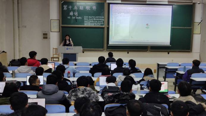 本次活动主要为大家讲解SolidWorks和UG两种三维建模软件的操作方法和使用技巧。活动伊始,活动负责人为同学们播放了一段有关三维软件模型建造的视频,引起现场观众的阵阵掌声。首先,讲解员闫秀苗以玫瑰花为例向同学们详细地讲解了UG的操作细节和技巧,她通过建造玫瑰花的花苞、花瓣和给玫瑰花添加颜色,使同学们对UG有了更加深刻的了解,并赢得了台下观众的阵阵掌声。随后,讲解员田超上台为同学们讲解SolidWorks的相关内容,值得一提的是,田超以狙击枪为例给同学们讲解SolidWorks,极大地吸引了台下观众的兴趣,加深了大家对SolidWorks操作步骤的印象。稍后,他通过现场操作,带领同学们学习了零件的建造和装配。经过近一个小时的讲解和操作,一个巴雷特狙击枪的模型出现在大家面前。最后,他提到,学习建模最重要的不是建模操作,而是建模思路,在设计建模前应先培养良好的建模思路。至此,此次培训会圆满结束。