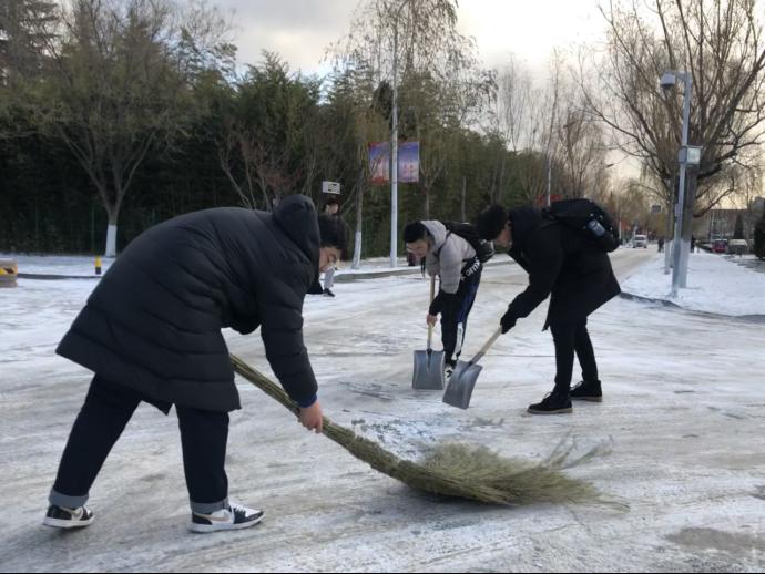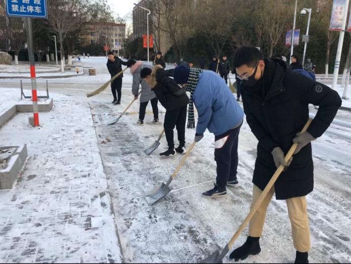 12月30日,烟台迎来强降雪,使得校园路面积雪结冰,阻碍了交通。为确保广大师生出入安全和校园内道路通畅,彰显新时代大学生的精神风貌,发挥党员先锋模范作用,12月31日,350vip浦京集团官网组织开展校园道路扫雪铲冰活动。350vip浦京集团官网团委老师和全体学生党员参与了本次活动。