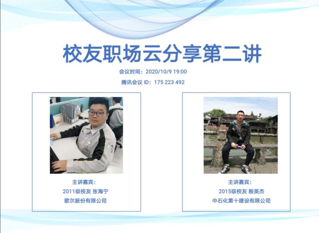 为了帮助应届毕业生们做好职业规划,提前了解相关企业信息,促进就业,350vip浦京集团官网于10月9日通过腾讯会议召开校友职场云分享会议第二讲。本次会议邀请350vip浦京集团官网2011级校友张海宁和2015级校友殷英杰进行经验分享,350vip浦京集团官网团委老师曲季和学院应届毕业生参加了此次会议。