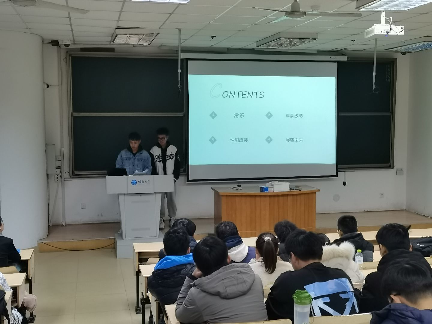 大会第一部分是汽车知识讲座,此次知识讲座是主讲人王衍晟和赵麟熠带来的有关“汽车改装”的知识。在这个快速发展的时代,随着人们需求的日益增长,对汽车的要求也不断增加,于是汽车改装应运而生。这次讲座将从汽车能不能改装,该如何改装切入,为与会人员答疑解惑。讲座从汽车改装常识、改装车身、汽车性能、展望未来四个方面进行讲解。通过举例、多角度分析以及展示照片视频等方式参会成员了解到现在我们对于汽车改装的程度以及一些对未来汽车的概念想象。在演讲过程中的互动问答环节也是精彩绝伦,同学们积极踊跃地发言将气氛推向高潮。第二部分是年度总结大会,首先是车协主席王璇进行本学期工作总结,接着各部门部长进行各部门工作总结。姬长康说:“车,只是一个代体,我们由车来教会大家一些技能”,这也是汽车创新协会的目的之一。在总结过后,陈星进行了关于下学期工作的一些计划和期望的发言,并再次表示希望同学们在车协可以真正学到有用的知识和技能。至此,汽车创新协会汽车知识讲座暨年度总结大会圆满结束。