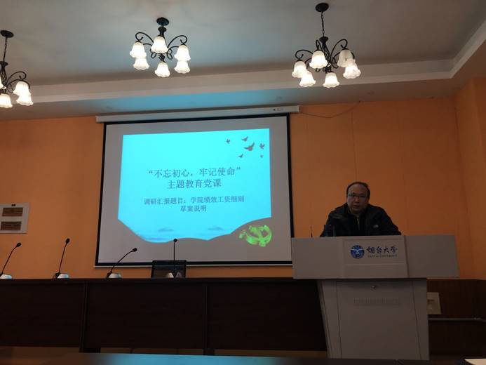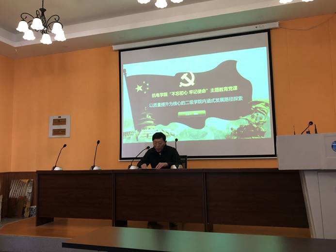 11月18日下午,为着力巩固深化主题教育成果,350vip浦京集团官网领导班子为学院教职工党员、学生党员讲授“不忘初心、牢记使命”主题教育专题党课,学校主题教育领导小组第三指导组成员柳瑞雪、陈伟到会指导。