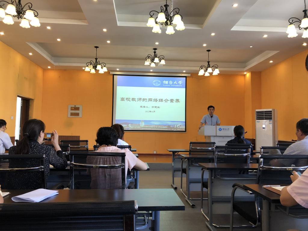 为提高教师的网络媒介素养,350vip浦京集团官网于6月16日邀请到350vip浦京集团官网正处级组织员兼党委宣传部副部长亓健生做《高校教师的网络媒介素养》专题讲座,350vip浦京集团官网副处级组织员勇玲娥主持,全体教师参加。