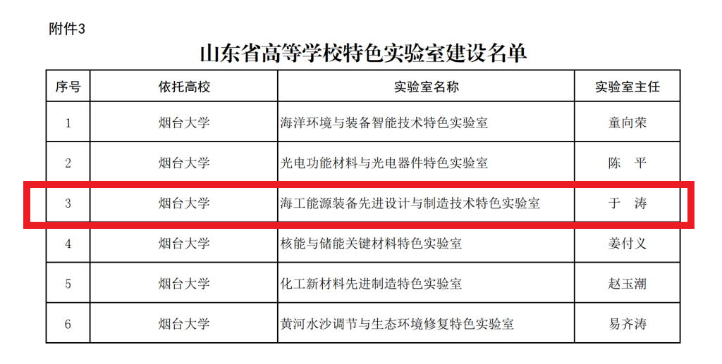 近日,山东省教育厅发布了《关于公布山东省高等学校实验室体系建设名单的通知》,浦京官网申报的“海工能源装备先进设计与制造技术特色实验”进入山东省高等学校特色实验室建设名单。