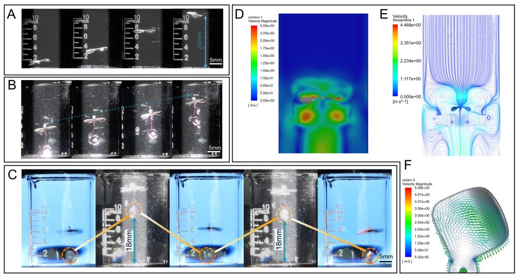 近日,350vip浦京集团官网杨文广团队在跨学科一区TOP期刊SENSORS AND ACTUATORS B-CHEMICAL上发表题为《Bio-inspired propeller robot with controllable pitch driven by magnetic and optical coupling field》的学术论文。该工作受仿生思想的启发,将直升机现有的驱动形式应用在微型机器人中,制造了一种光可控变距微螺旋桨机器人。在合成的光响应复合水凝胶内部封装磁性材料,并通过磁场发生器为微螺旋机器人提供旋转动力。通过氙灯光源的照射来调节桨距,使螺旋桨变换不同的运动形式。可控变距螺旋桨机器人为微型水下航行器和微飞行器的设计提供了一种新颖的思路。