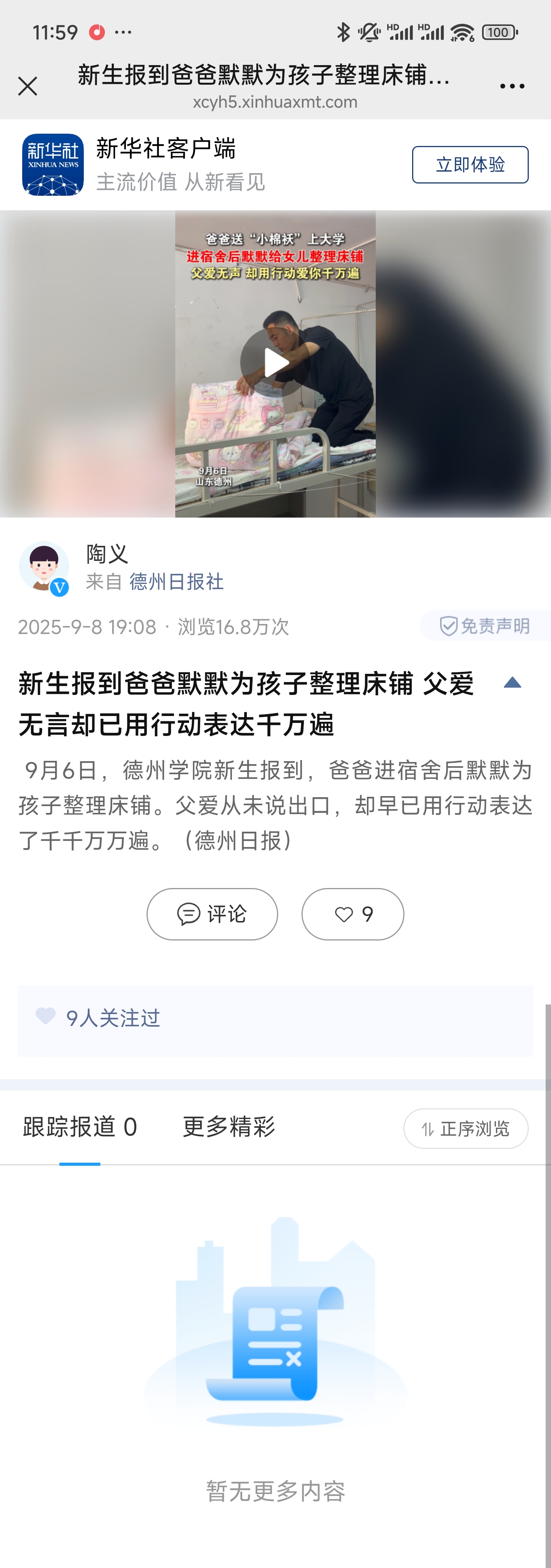 新华社:新生报到爸爸默默为孩子整理床铺 父爱无言却已用行动表达千万遍