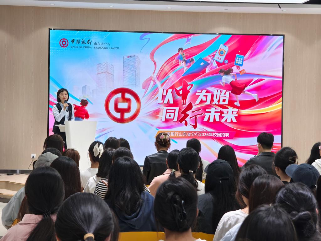 宣讲会伊始,中国银行倪主任从企业概况、人才培养模式、职业发展路径、薪酬福利体系出发,深入介绍信息科技岗、营业网点业务岗等校招岗位,诚挚邀请毕业生加入。随后,万豪集团杨经理系统阐述了企业的品牌文化、岗位需求细则、多元福利体系与完整招聘流程,鼓励大家通过官方平台踊跃报名。互动交流环节,毕业生们积极提问,现场气氛活跃。