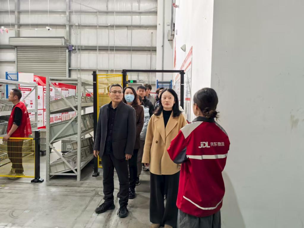 活动首站走进京东亚洲一号德州齐河物流园二期存储仓,在工作人员引导下,师生们有序参观了商品的智能存储区、自动化分拣线,见证了从商品入库、定位存储到订单分拣、出库核验的全流程智能化运作。随后,师生一行前往京东物流一期仓库,重点观摩了以传送带为核心的自动化分拣运作系统。参观结束后,双方开展交流座谈会,企业负责人围绕公司的发展阶段、业务辐射范围等成就展开介绍,详细解读了京东物流仓的发展历程、京东新锐之星项目、员工晋升通道及薪酬福利体系等内容。学院负责人介绍了学院学科专业设置、师资力量、人才培养特色及2026届预毕业生等基本情况,强调希望以此次活动为契机,深化与京东物流的校企合作,为学生搭建更多实习就业平台。