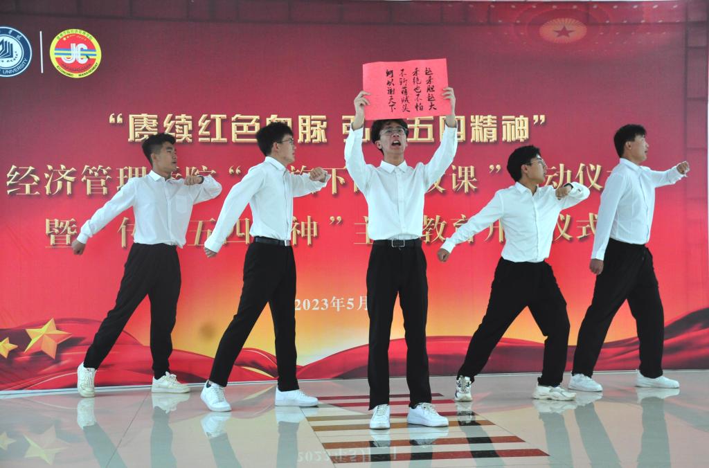 青年学生代表作了题为《弘扬五四精神 青春心向党》的汇报发言,号召同学们要坚定理想信念,积极进取,不仅要有正义感,更要有责任感;不仅要有爱国心,更要有进取心,彰显青年人“舍我其谁”的豪情壮志,将个人理想和国家发展紧密结合,在实践中磨炼自我。