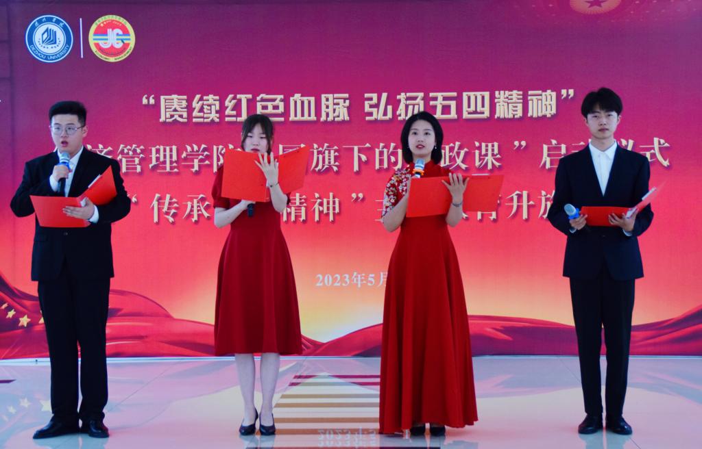 为深入学习贯彻党的二十大精神,赓续红色血脉,弘扬“五四”精神。5月4日,经济管理学院在明理楼爱国主义教育基地开展了“国旗下的思政课”启动仪式暨“传承五四精神”主题教育党团日活动。经济管理学院主要负责人、党支部书记、辅导员、学生党员代表、学生团员代表共142人参加本次活动。