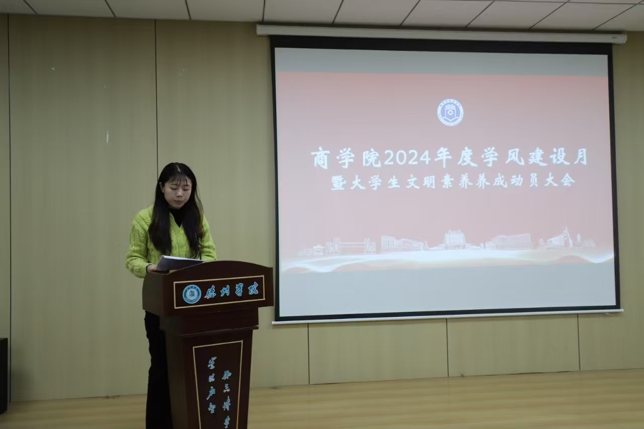 大会伊始,团委书记王向蕊宣读《taptap点点体育“提升大学生文明素养 加强学风校风建设”工作方案》,从学风建设制度、主题教育活动、榜样示范引领、特色活动开展等方面入手,号召同学们“学在德院,励志成材”,以思想引领育学风,以榜样示范正学风,以特色活动践学风。