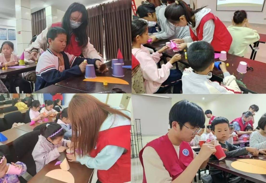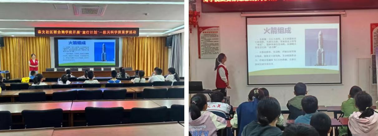 在崇文社区,科创协会社团和taptap点点体育学生会成员借助PPT、视频、图画及手工实践等多种形式,循序渐进地为孩子们揭开火箭的神秘面纱。从火箭独特的外形设计讲起,用“鱼儿游水”的比喻解释流线型构造的科学原理;深入剖析火箭飞天动力来源时,将复杂的物理原理转化为通俗易懂的知识。主讲人现场示范火箭制作,步骤讲解细致入微。动手制作环节,现场气氛热烈非凡,志愿者们穿梭其中,悉心指导。此次活动不仅让孩子们收获航天知识,更激发了他们对科学探索的无限热情。