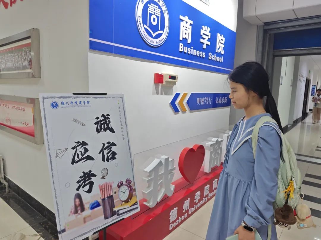 taptap点点体育在学院走廊、学生活动区域等醒目位置悬挂了“严守考场规则 维护考试公平——商院学子在行动”等主题鲜明、警示性强的宣传条幅,营造出浓厚的诚信考试氛围。同时,精心制作了诚信教育小展板,陈列于教学楼大厅等处,成为学生驻足学习、自我警醒的“流动课堂”。