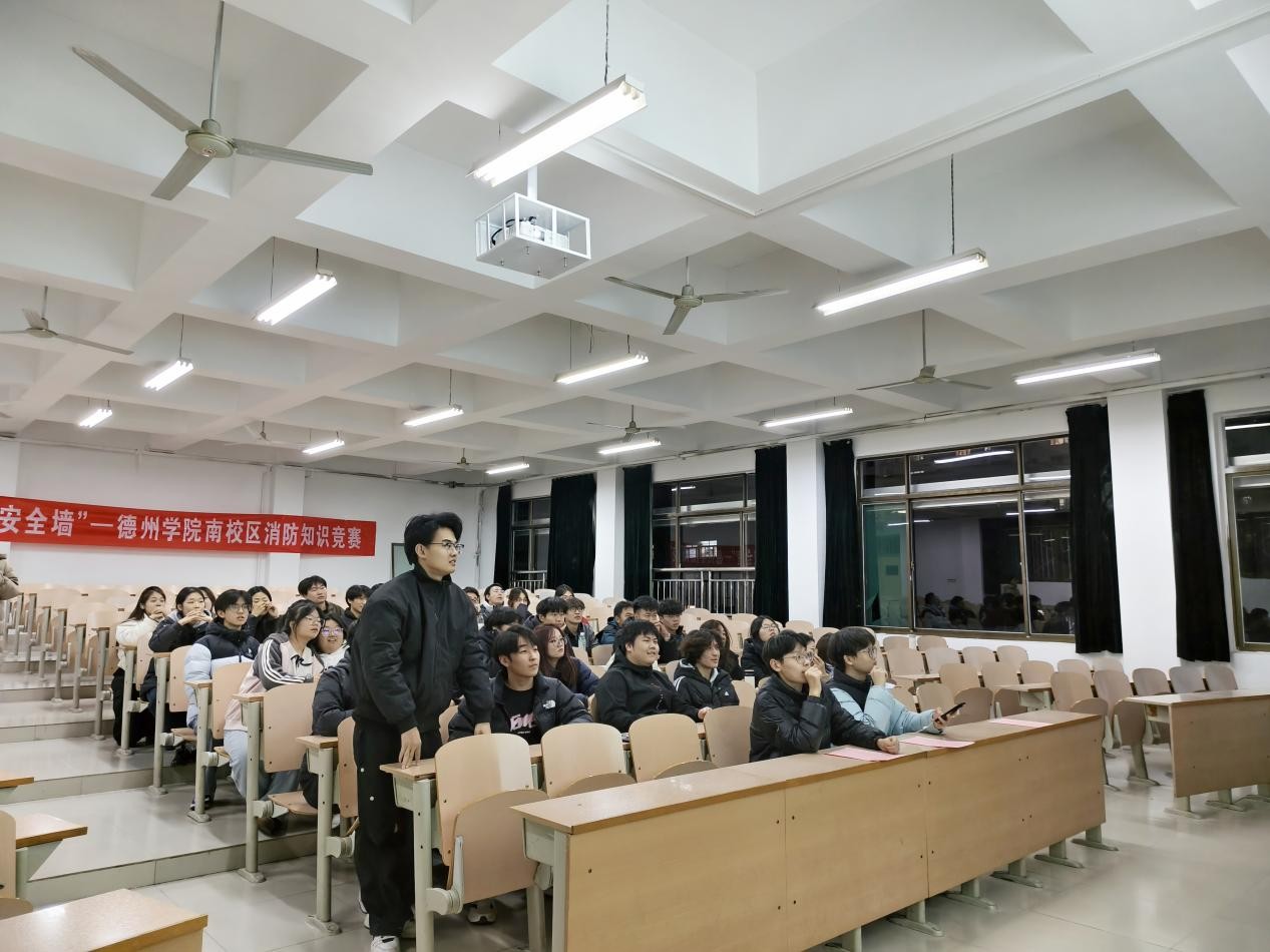 二是以赛促学强本领,知识考核验成效。消防知识竞赛围绕消防法规、火灾报警规范、疏散逃生准则、器材操作标准等核心内容设置考题,全面覆盖理论与实操要点。参赛选手严格遵循竞赛规程完成答题环节。通过“以赛促学、以赛促练”的考核模式,有效夯实了学生的消防知识储备,强化了火灾隐患排查、初期火灾扑救等核心能力,推动安全理念从“被动接受”向“主动践行”转变。