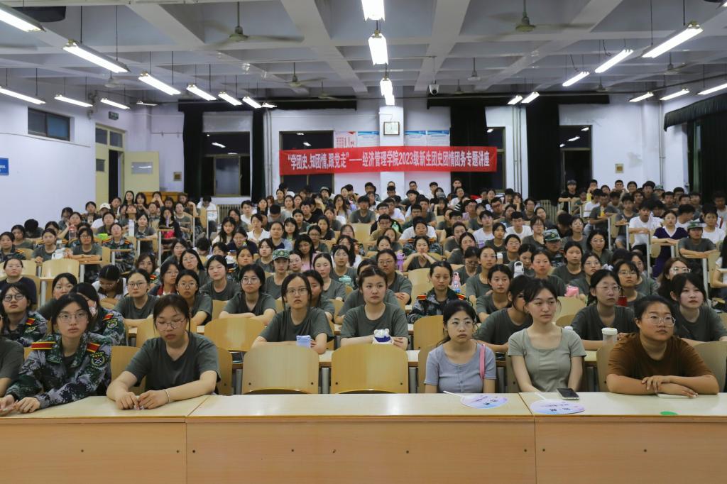 为深入学习宣传贯彻习近平总书记在同团中央新一届领导班子成员集体谈话时的重要讲话精神,全面贯彻落实团十九大和团十九届二中全会部署,引导青年学生用党的最新理论凝心铸魂,武装头脑、指导实践,9月7日,经济管理学院团委面向2023级新生开展了“开学第一课”主题团课活动。经济管理学院团委负责人、学生兼职副书记、2023级全体新生参加了此次活动。