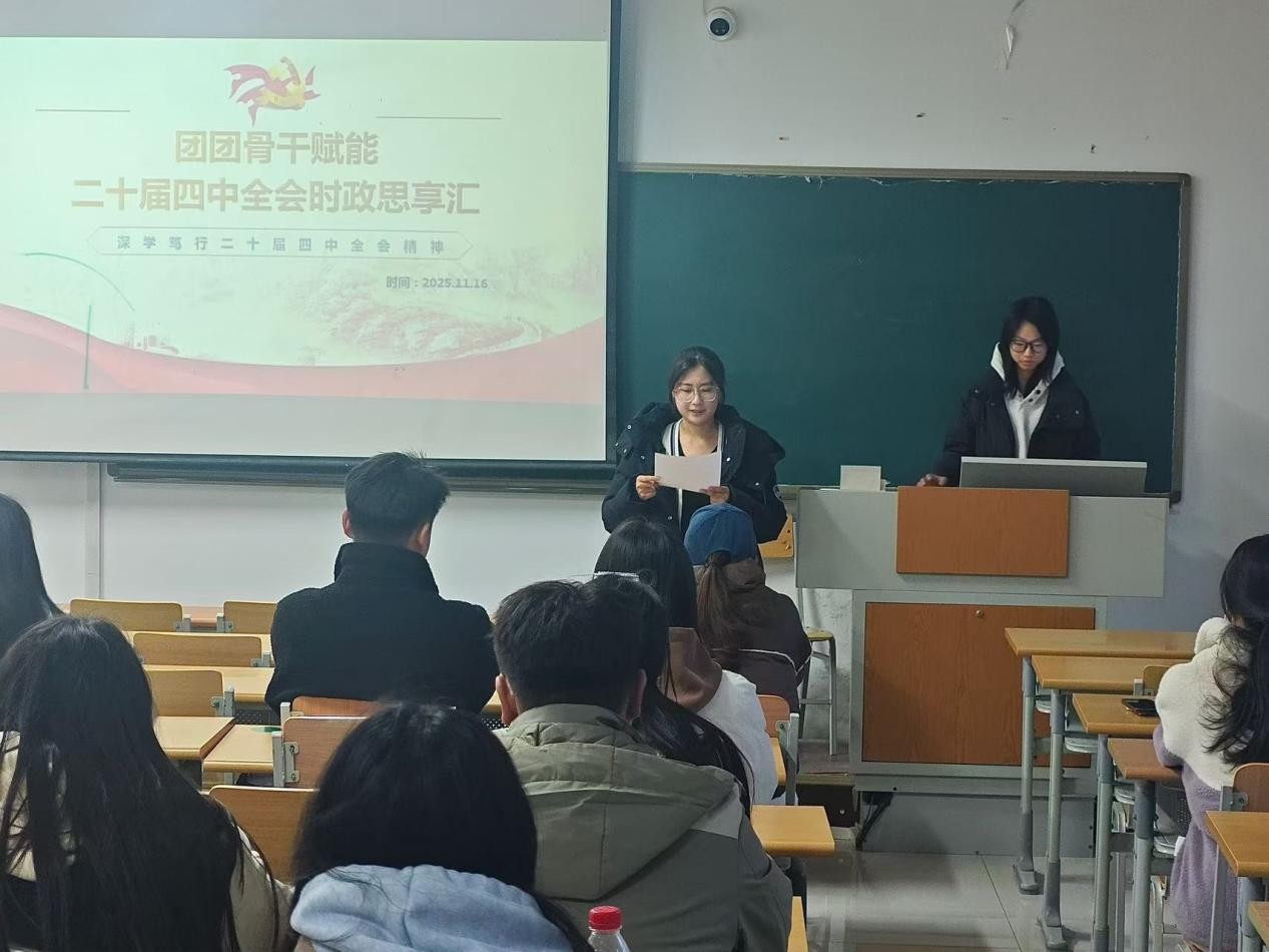 为深入学习贯彻党的二十届四中全会精神,加强团学骨干队伍政治锻造与思想引领。taptap点点体育11月16日于明理楼0351举办“团团骨干赋能——党的二十届四中全会时政思享汇”主题活动。25级各班学生骨干齐聚一堂,在学思践悟中把握时代脉搏,在交流探讨中凝聚青春力量。