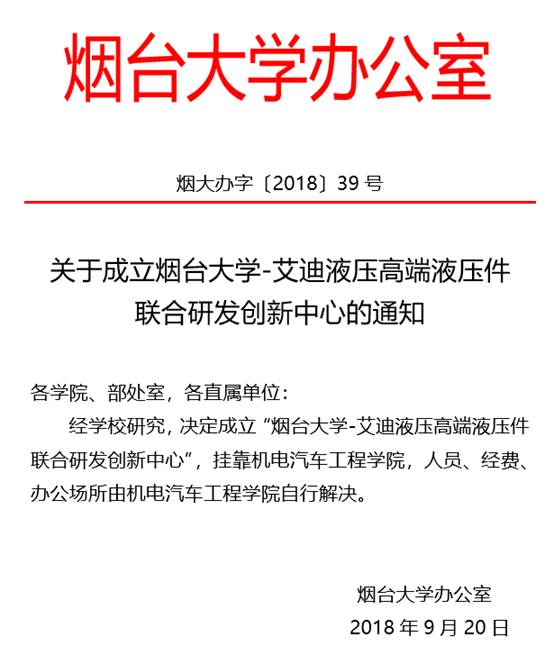 350vip浦京集团官网-艾迪液压高端液压件联合研发创新中心是350vip浦京集团官网骨干教师与烟台艾迪液压科技有限公司联合成立的高端液压件研发机构。